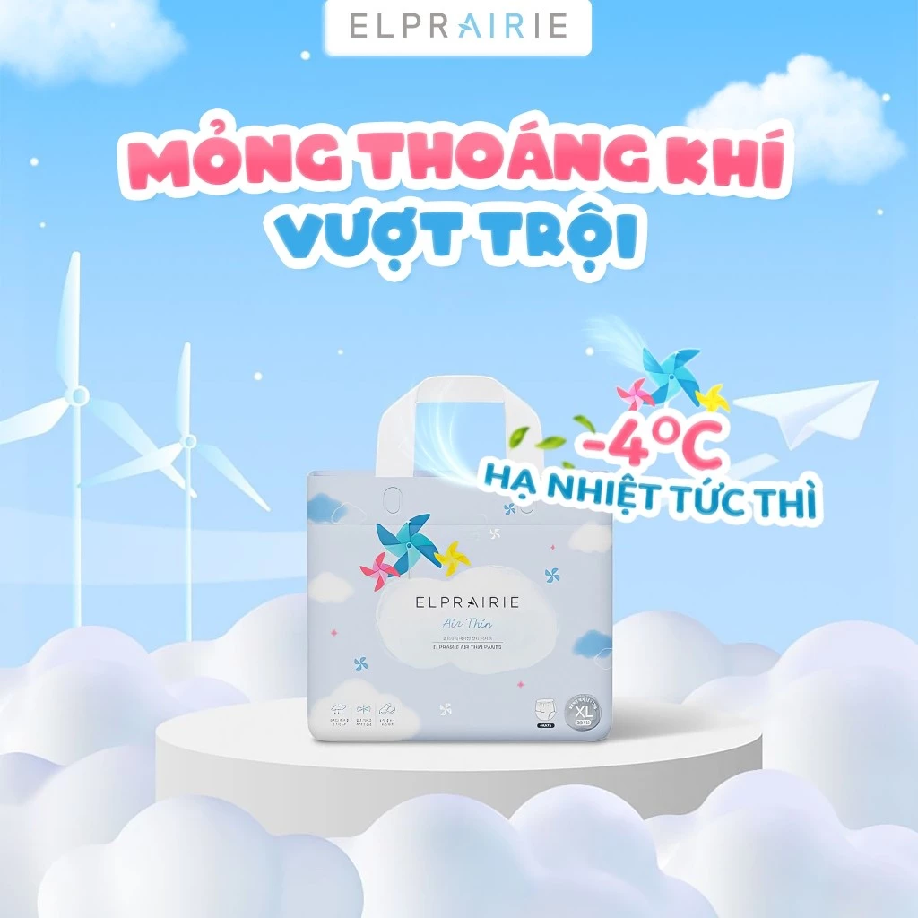 Tã/Bỉm Quần ELPRAIRIE Air Thin – Bỉm Mỏng Nhẹ Số 1 Mùa Hè, Giải Nhiệt Tức Thì Cho Bé Yêu