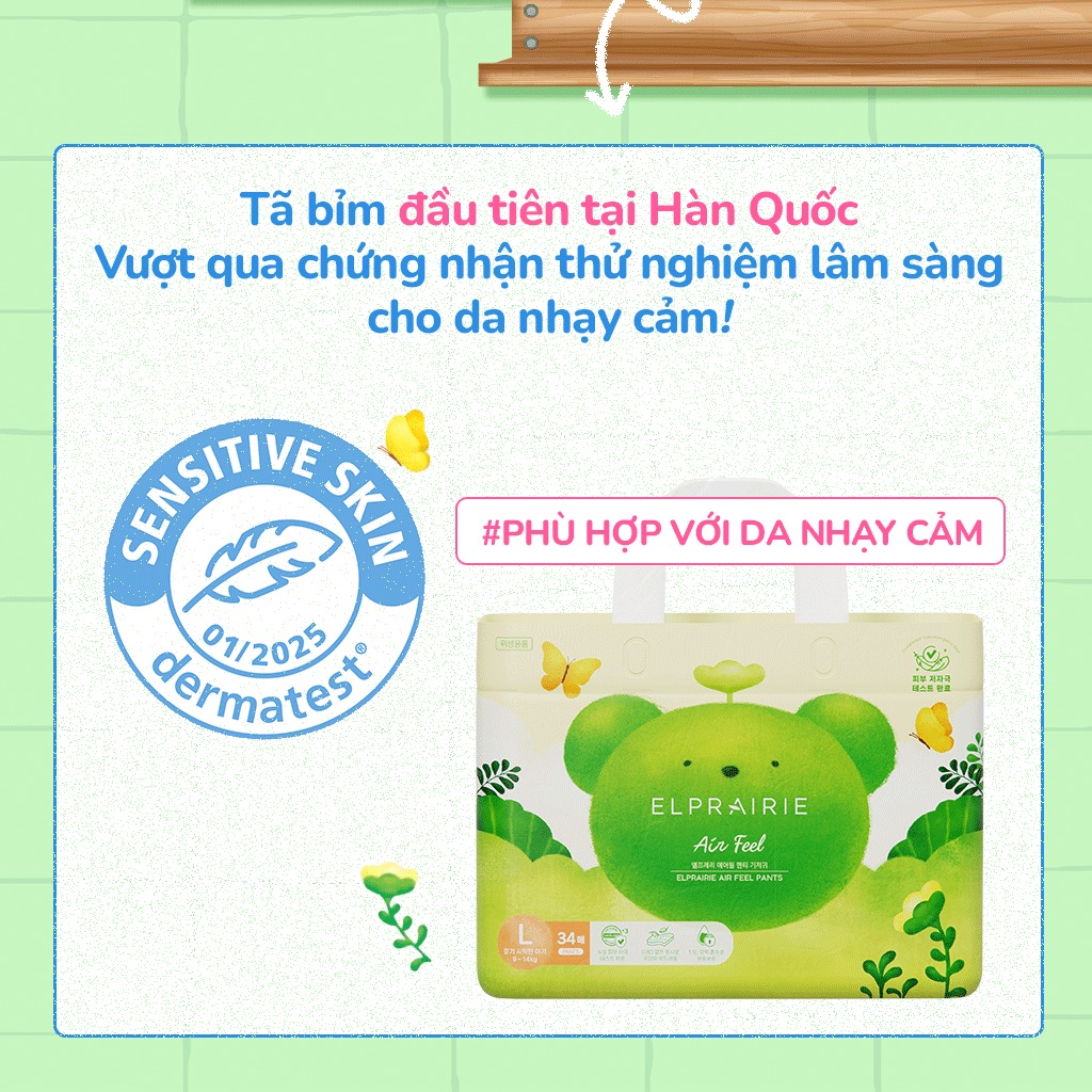 Dòng bỉm này được sản xuất theo tiêu chí không chứa hương liệu, cồn, clo, formaldehyde hay paraben. Nguyên liệu chủ yếu là vải không dệt từ sợi thực vật, lõi thấm hút SAP tinh khiết, không chứa các chất độc hại. Mỗi sản phẩm đều trải qua kiểm nghiệm da liễu độc lập, đạt chứng nhận Dermatest “Excellent” của Đức, đảm bảo an toàn tuyệt đối cho trẻ sơ sinh, đặc biệt là những bé có làn da nhạy cảm.